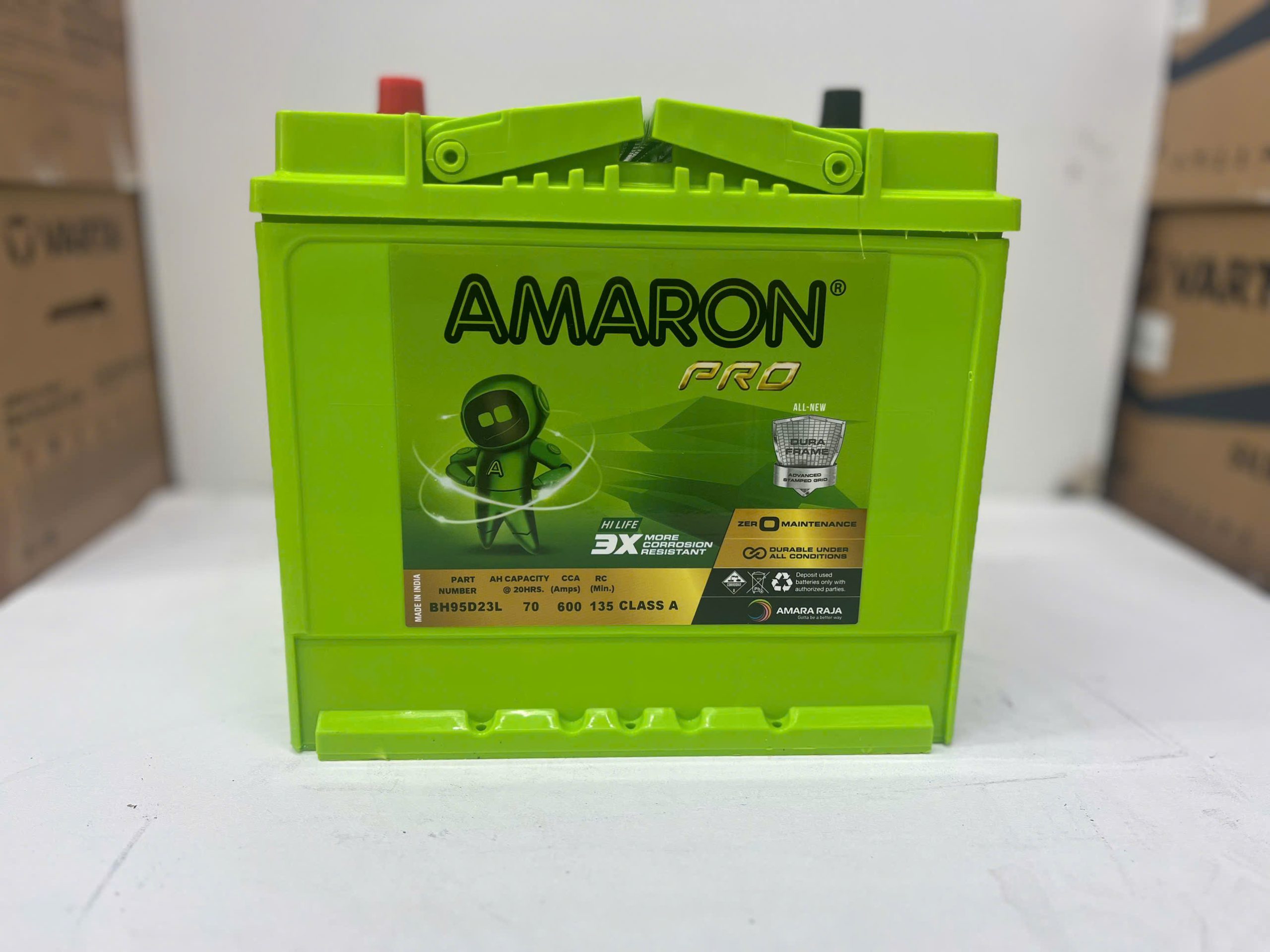 Ắc Quy Amaron 95D26L Ắc quy Amaron là thương hiệu nổi tiếng toàn cầu, có nguồn gốc từ Mỹ và được sản xuất trực tiếp tại Ấn Độ bởi tập đoàn Amara Raja Batteries – đối tác chiến lược của Johnson Controls Inc (Mỹ).